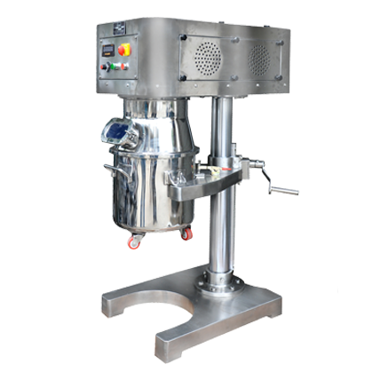 Planetary Mixer Consists Of 2 Open / Cage Type Agitators Which Move In Planetary Motion Hence Giving 3 Dimensional Mixing To The Material In The Bowl. There Is A High Speed Homogenizer Through A Hollow Shaft With An Independent Drive System ( For Cream / Ointment Mixing Model Only) The Beater And Scraper Rotate With Help Of Motor And Gear Box And The Planetary Motion Is Provided By Another Set Of Gears Fitted In The Machine. The Bowl Is With / Without Jacket To Suit Process Requirement. It Is Provided With Suitable Locking System Which Is Removable Type. Top Assembly Consists Of A Top Dish With Gasket, Gear System Coupled With Suitable Gear Box And Motor. Suitable Lifting System Is Given For Top Lid, Lifting And Lowering. Contact Parts Are Of S.S. 316 Or S.S. 304 As Per Clients Requirements And Non Contact Parts Are Cladded With S.S. 304 In Case Of Gmp Model And Painted In Case Of Non Gmp Model.